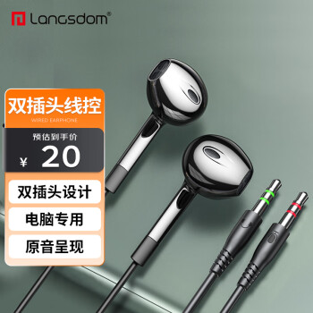 蘭士頓電腦耳機有線雙插頭雙孔帶麥克風筆記本臺式機電競K歌游戲